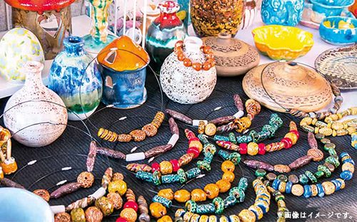 木工品や布小物をはじめ、プリザーブドフラワーやアクセサリー、Tシャツなどの販売。 また、似顔絵や、簡単なアクセサリー、ハーバリウムなどのワークショップを行っていただいたりと、見て触って買うだけではなく、自分で体験できる楽しさも感じていただけます。