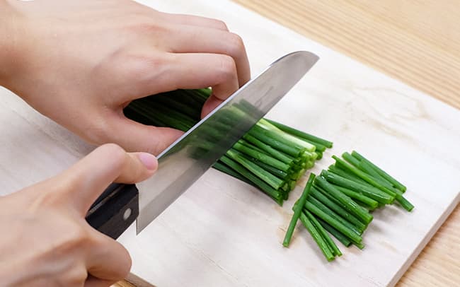 細ねぎは食べやすい大きさにカットする。タレの材料を混ぜ合わせて器に入れておく。